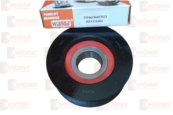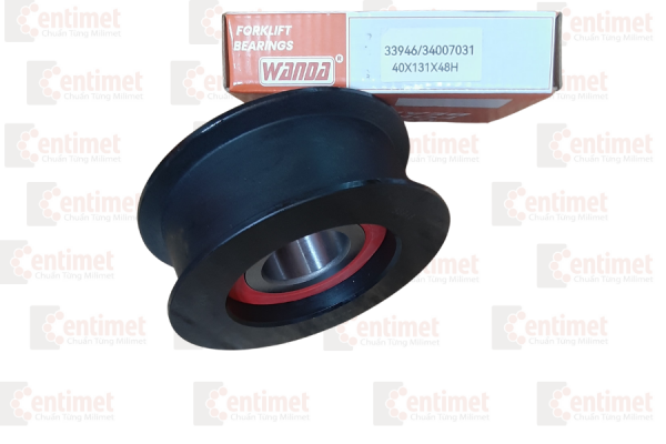 - Vòng bi xích 33946/34007031(40X131X48H) có công năng tương tự chiếc ròng rọc, đổi hướng lực kéo từ xi lanh lên giá càng.