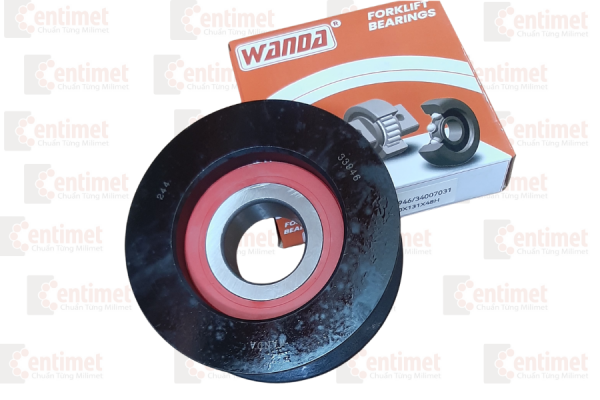 - Vòng bi xích 33946/34007031(40X131X48H) có công năng tương tự chiếc ròng rọc, đổi hướng lực kéo từ xi lanh lên giá càng.